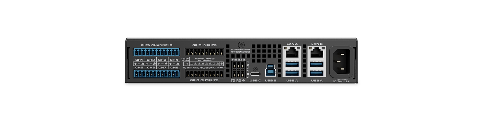 - USB AV bridging (16 x 16 audio + Q-SYS camera support)